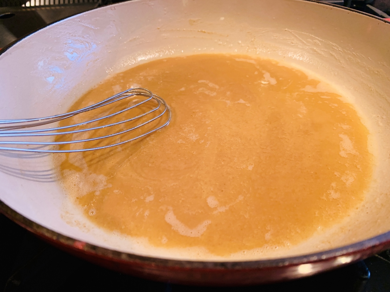 - Mix spices together in a small bowl, set aside. In a large skillet, add butter and place over medium heat. After butter has melted, sprinkle in flour, whisk. Turn heat to low and stir until roux is light caramel brown, about 8 minutes.
