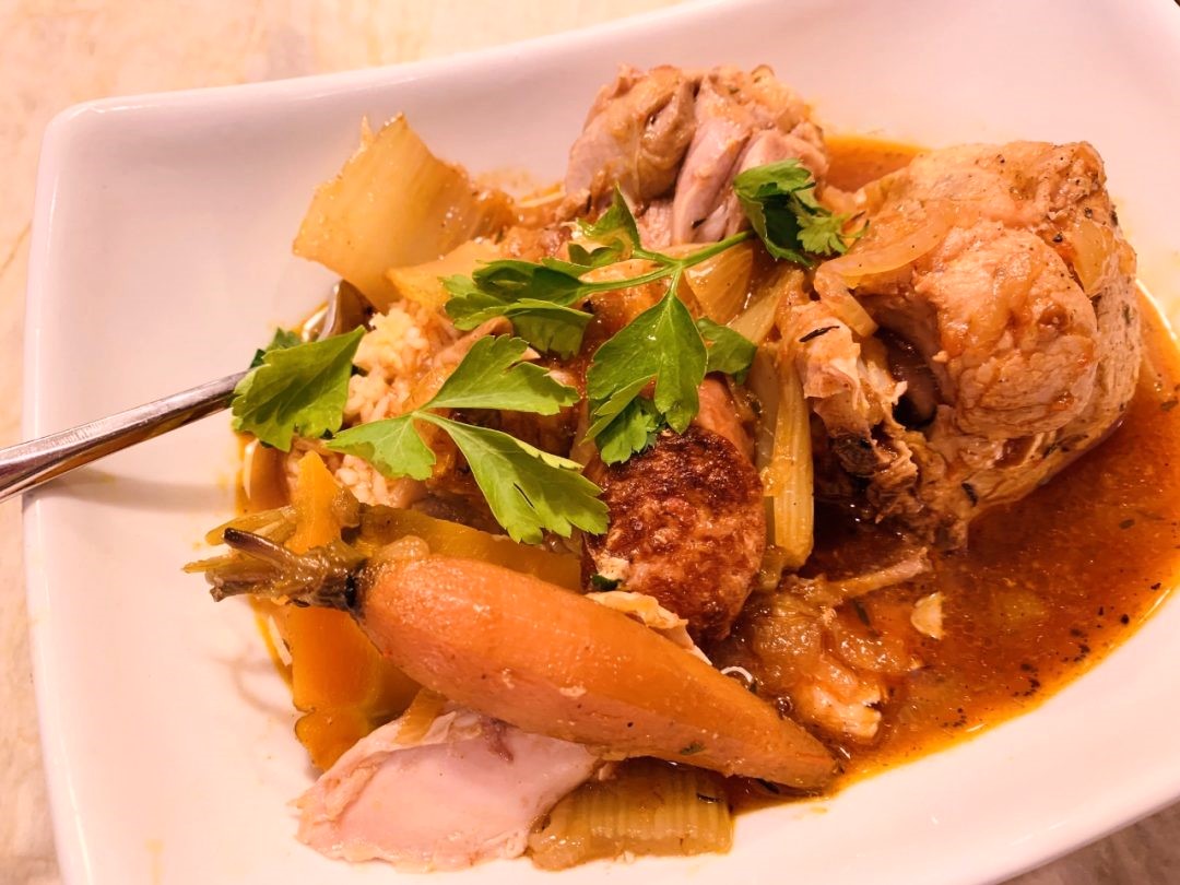 Slow-Cooker Chicken and Andouille Sausage Stew is one pot meal with flavors of New Orleans. Andouille Sausage is smoked pork sausage, which was created originally by the French, who then brought it to Louisiana, and you can now find it almost anywhere, including your local grocery store.