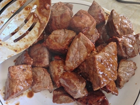 1.  Salt and pepper your stew meat generously. Add 2 tablespoons of olive oil to insert of slow cooker and place over medium-high heat. *If you don’t have a slow-cooker with insert, cook stew in a regular pot and pour ingredients in slow cooker afterwards.