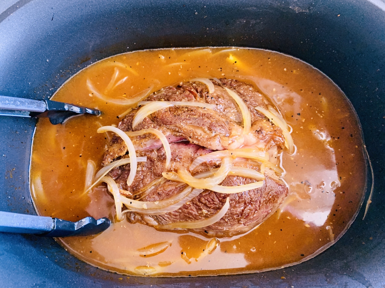 The slow-cooker makes a great vessel for this beef dish to cook in half a day’s time, and makes it super simple for cleanup. I served this roast with skin-on mashed red potatoes, but steamed rice or noodles would also go nicely. The leftovers are a whole different thing, so stay tuned for an easy preparation of a new recipe using shredded beef this week.