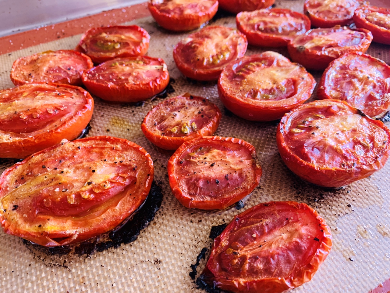 Roasting vegetables is easy enough to do and as far as beets are concerned, you don’t even need to peel them prior to roasting. Just cover the beets with foil and bake on a sheet pan. Roasting tomatoes are almost as simple, just slice in half, drizzle with olive oil and sprinkle with salt and pepper. You won’t believe how succulent they become.