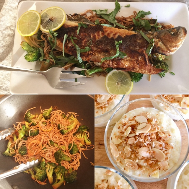 The side dish this week is Ginger Broccoli & Soba Noodles, which you prepare in the same pan after the fish is done. The noodles are mostly made of buckwheat, so they are almost gluten-free, for those of you with sensitive tummies, but I just love to cook with Soba Noodles for the fragrant slightly earthy tones.