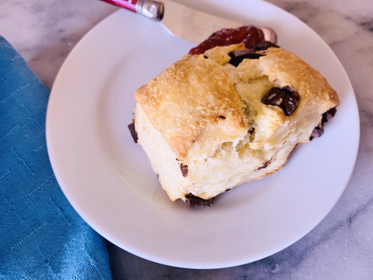 The sourdough discard replaces any manufactured yeast that you would normally use, and also gives the biscuits a slight tang that is so enjoyable, especially with chocolate.  If you’ve ever had a warm sourdough boule or bun with a piece of melted chocolate tucked inside, you know what I’m talking about.  These biscuits fall somewhere between that experience and a crispy chocolate croissant served right out of the oven, but with a lot less work.  I hope you’ll think twice about discarding the discard.