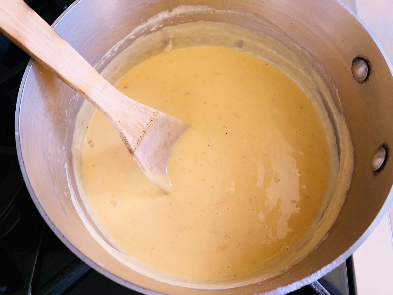 - In a large saucepan, add butter and onion and place over medium heat. Cook for 3 minutes, stirring frequently. Add flour and stir. Cook for 1 minute and add dry mustard, stir. Add milk and whisk until smooth, and thickened, about 4 minutes. Add cream and stir.