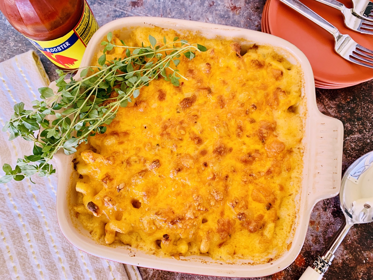 As far as pasta, elbow or cavatappi really grab and hold on to the sauce, something you should always strive for in a good macaroni and cheese recipe. I don’t add breadcrumbs or crackers to top off my dish because I don’t want anything or anyone getting in the way of my cheesy pasta recipe. A good hot sauce and some dry mustard are the other candidates that bring this party together to form one tasty meal.