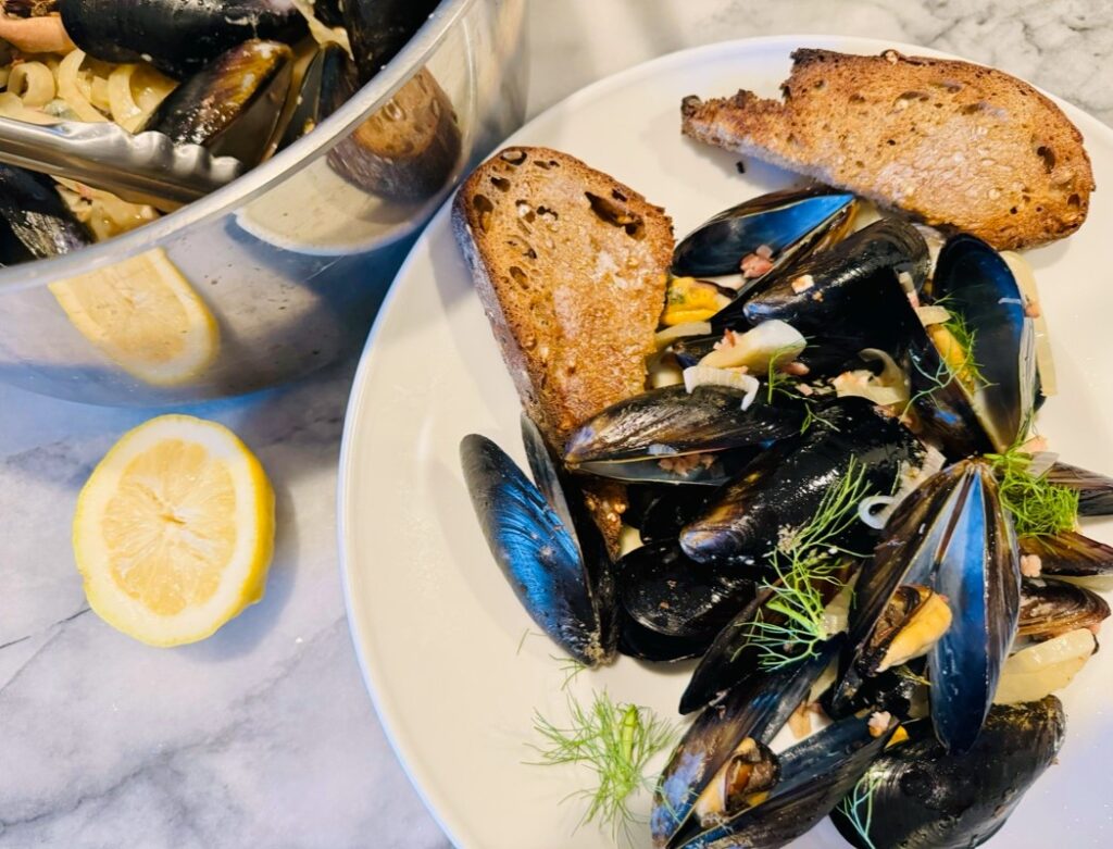 Steamed Mussels with Pancetta and Caramelized Fennel – Recipe!