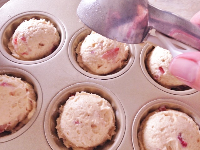 Strawberries and lemons make a nice combination because fresh berries and citrus balance out each other, like in a strawberry lemonade. In this recipe, I chopped fresh strawberries and folded them into a lemony batter. If you can get your hands on a Meyer Lemon, I highly recommend it – the zest is softer and provides a subtle citrus boost. Also, I added a bit of whole wheat pastry flour into the mix for a earthy edge that makes these muffins taste from the garden.