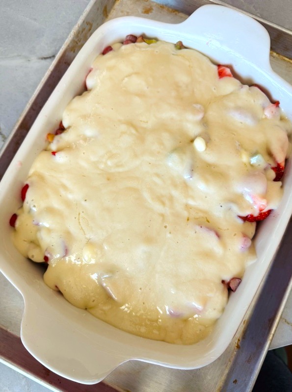7. Pour topping over fruit in pan and bake for 45-50 minutes or until golden brown.