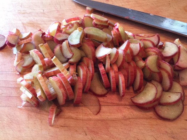 2. To make the filling – slice rhubarb and place it in a bowl along with strawberries, sugar, cornstarch and salt. Toss to combine, set aside.