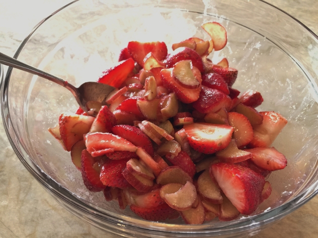 Strawberries and rhubarb go so nicely together. When I was young, my Grandpa Bell used to enjoy my Nanny’s strawberry & rhubarb pies and during the spring season at family get-togethers, he would always hope there would be a fruity treat sitting on the table for dessert.