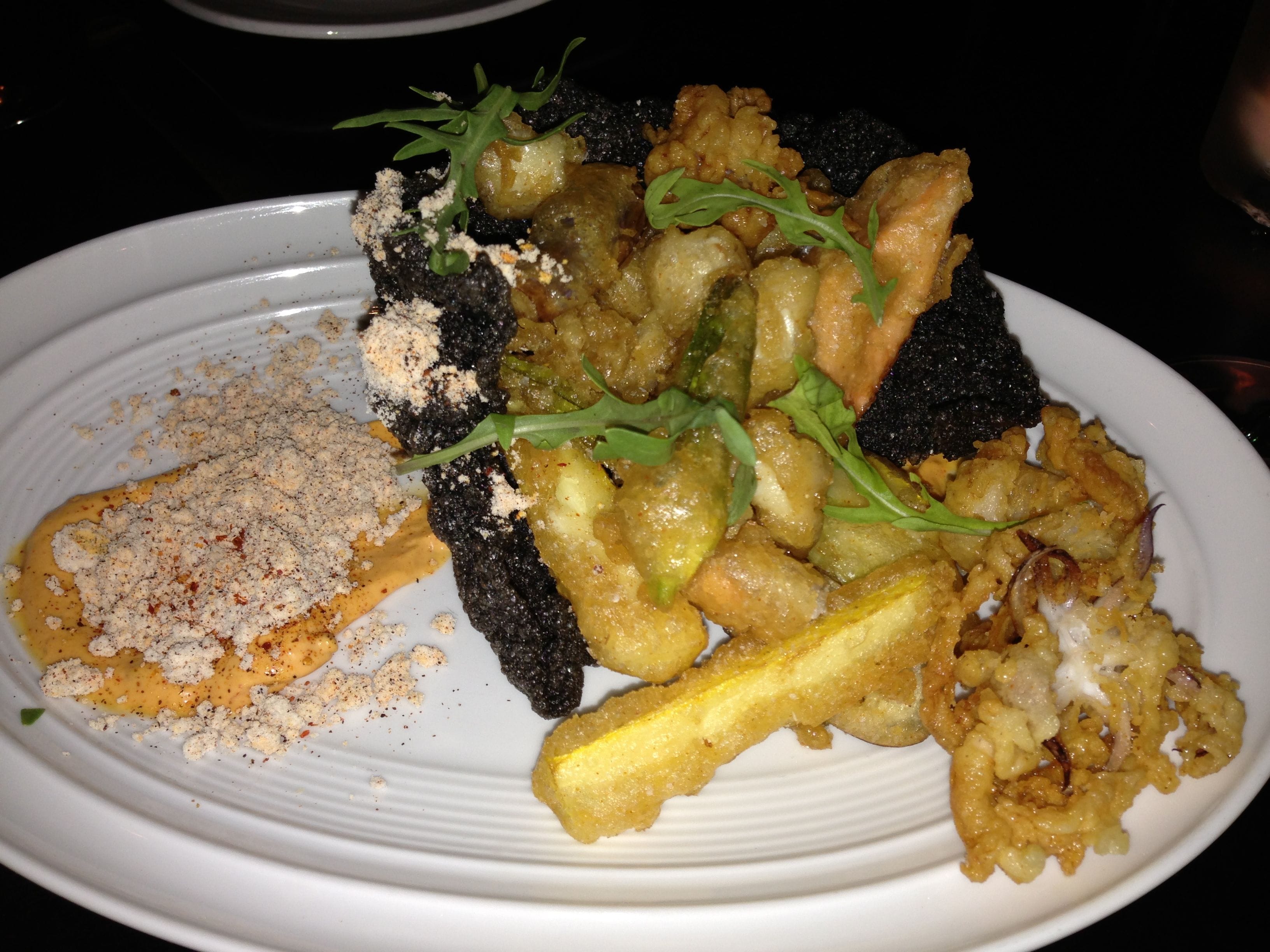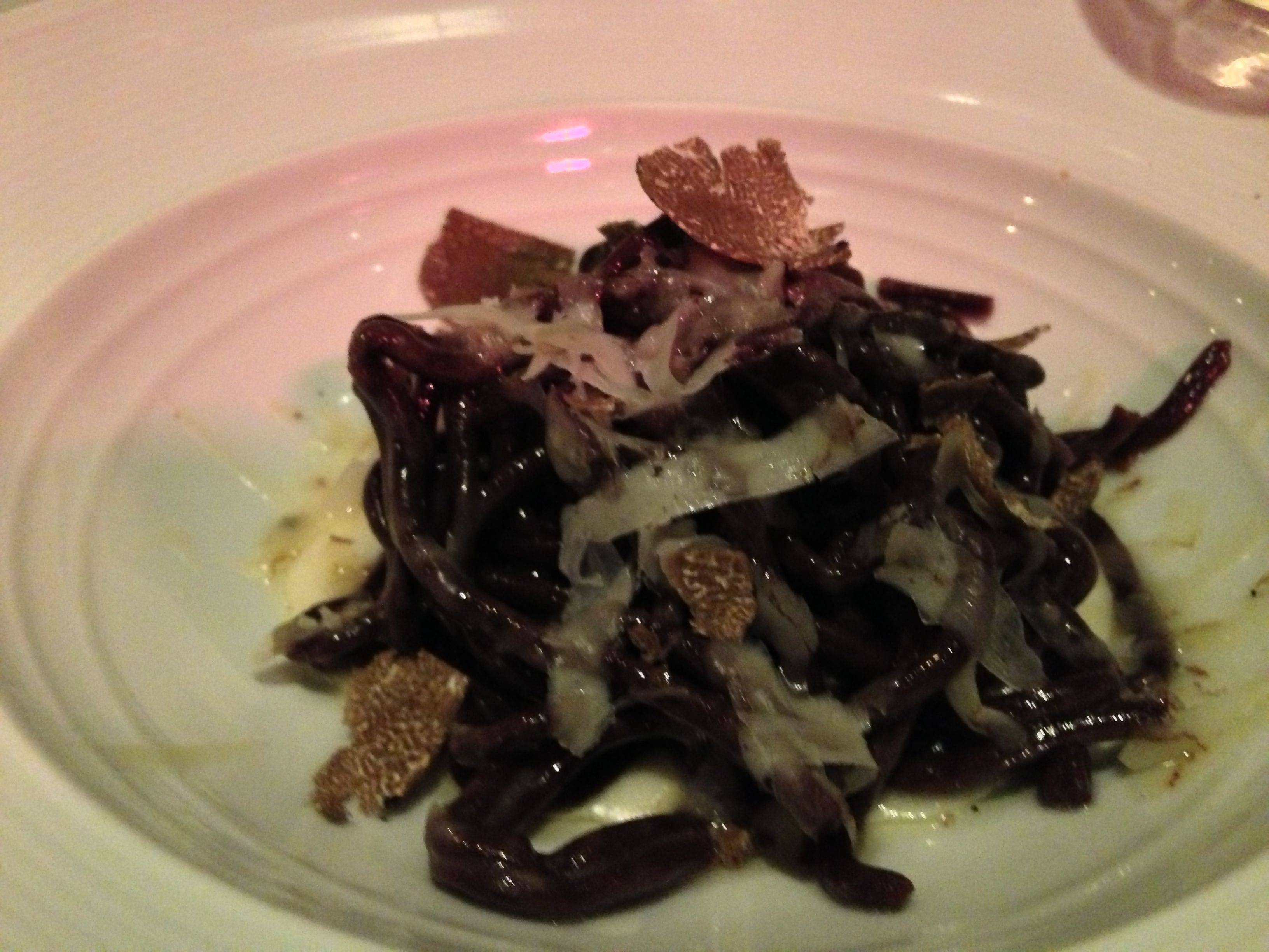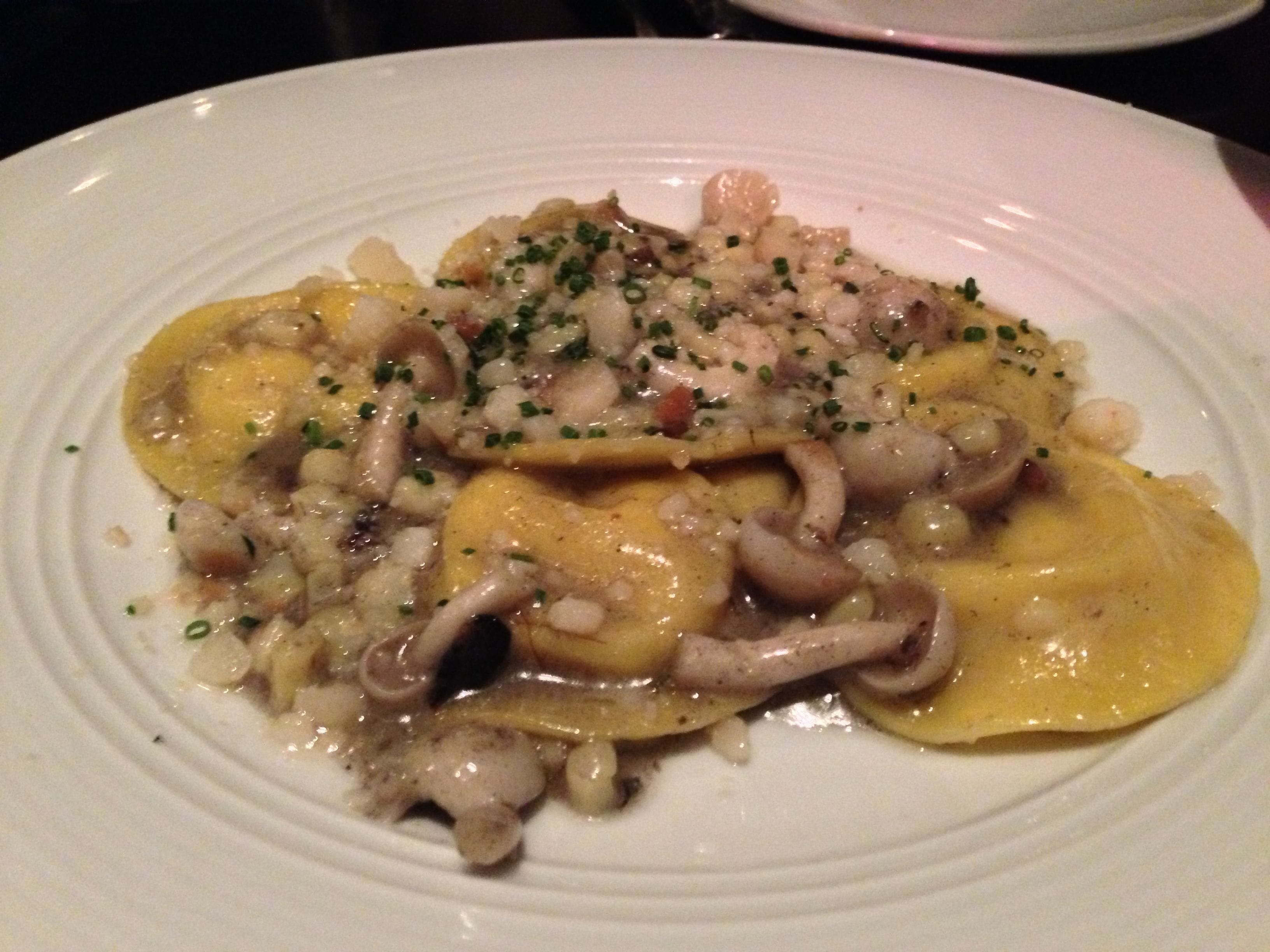 The White Corn Ravioli with Alba mushrooms, huitlacoche butter and smoked goat cheese was another decadent treat. The pasta was coated in this corn fungus butter and filled with corn and goat cheese. Some dishes fell short – the squid ink chittara which was a little dry and the mushroom torchio with chard and espresso cheese which tasted bland.