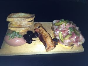 As for the menu, very clever, starting with the Cold Cuts section of the menu. This section consisted of five selections of house cured charchuterie which was quite impressive. You could choose one, three or all of the selections and I went with three – Porchetta di Testa Pastrami on rye, Smoked Bacon and Membrillo (quince paste) and Julia Child’s famous Chicken Liver Mousse with Balsamic Figs. The platter that arrived looked mouth watering and it sure was….delicious. The porchetta was creamy and salty and the rye complimented the flavors nicely. The smoked bacon was a nice chunk of pork belly that was seared crisp on the outside and tender on the inside. Julia’s chicken liver mousse – well what can I say…it’s Julia!