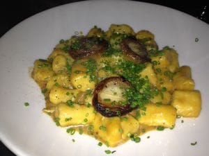 The “From Our Hands” portion of the menu was all handmade pastas which were very difficult to choose from because they all read so delicously. The smoked bucatini carbonara was the most popular but, I was in the mood for a little more exotic so we went with the Pierogi Gnocchi. This gnocchi was served in a mustard cream sauce with smoked pork and sauerkraut. It must have been the German in me that was craving such a unique and comforting dish. My only complaint would be — more smoked pork please!