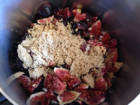 Figs are so versatile because you can use them in sweet or savory dishes. What makes figs really delicious is to pair them with rich cheeses like bleu cheese, the combination is delightful. I like to make my special sweet & savory jam when I have an large crop. Fig jam is simple to make and stores in your refrigerator for weeks. A dollop of this jam on top of a crostini with cheese makes a nice appetizer for parties — yum.