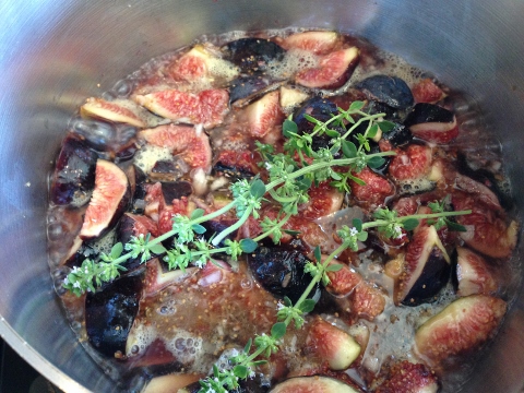 4. Fish out the thyme stems and spoon the jam into a glass jar. Cool the jam on the counter top until room temperature and store in the refrigerator or top on your favorite party appetizer. Enjoy!