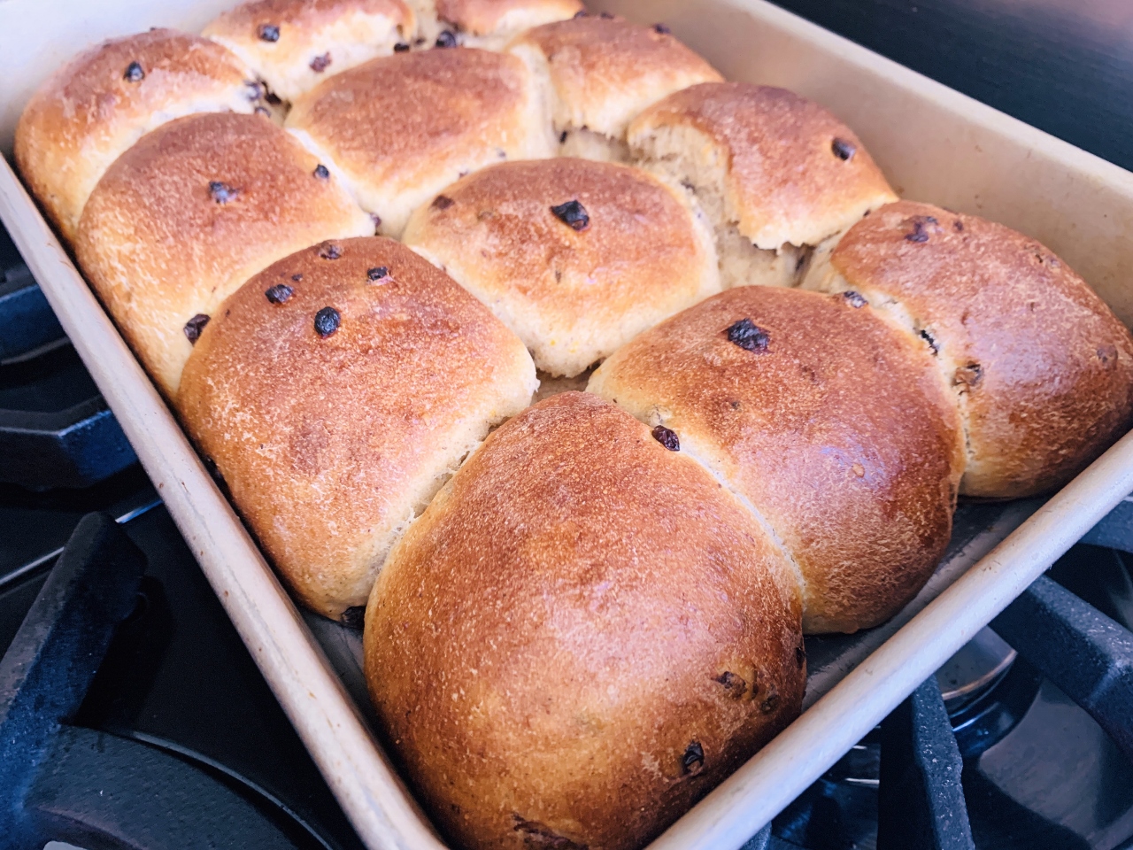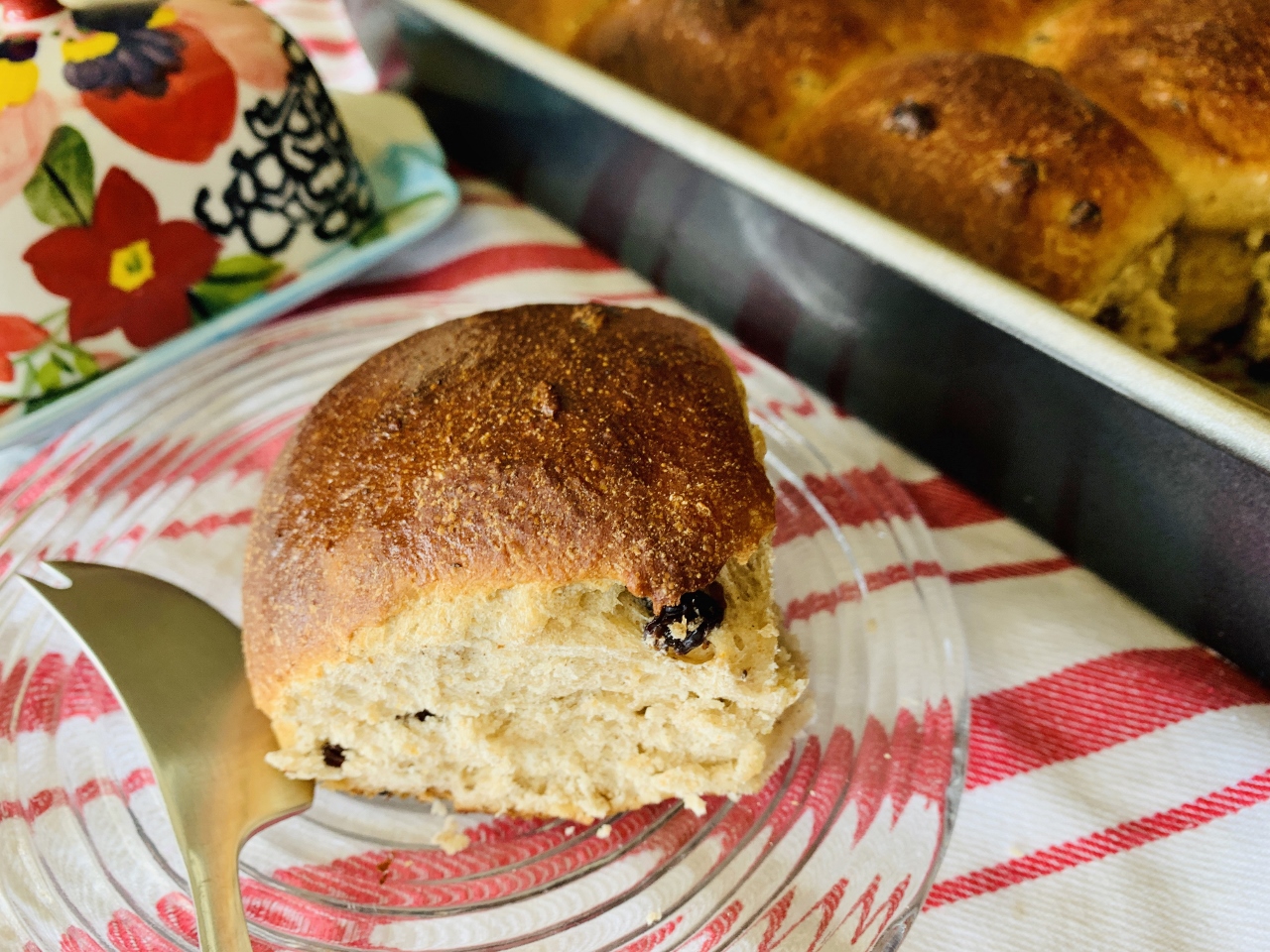 These rolls have a little sugar in them to heighten the fragrance of the warming spices like cardamon, allspice and cloves, but they don’t taste Chrismassy, if you know what I mean.  They just have a hint of orange, spice and everything nice.  I added a few currants to the dough, for a speck of additional chew and sweetness too.  These rolls are great for breakfast with a smear of butter, also pretty delish when split, and stuffed with ham & cheese, and then warmed in the oven for lunch, or nice with a big bowl of soup at dinner.  Wow, these are some pretty versatile and amazing rolls.
