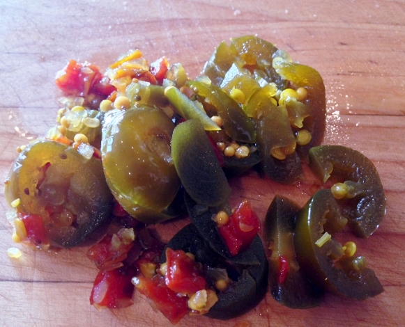 1/4 cup store-bought pickled jalapenos, regular or tame