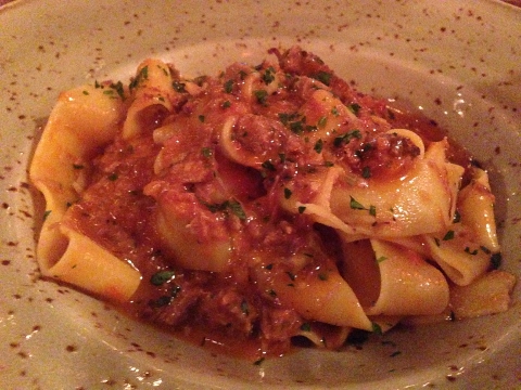 For our entree we split the Short Rib Pappardelle. Fresh pasta, made in house, tossed in a light red sauce with soft shredded beef. The pasta was al dente and the sauce coated the noodles perfectly.