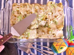 Family Style Food Laugh Main Courses Chicken Enchiladas Verdes – Recipe! March 26, 2019 / November 23, 2025 by Gena Bell | Leave a Comment Enchiladas, corn tortillas filled with cheese, meat and many times vegetables, are most often topped with red chili sauce and baked in the oven. Enchilada sauces can be made with a variety of different chilies like; Ancho, New Mexico or Guajillo, however sometimes they are prepared with Mole’ or Salsa Verde (Tomatillo) sauce, which offers […] Read more » Best Enchiladas Chicken Enchiladas Verdes - Recipe! Cinco de Mayo Recipes! cooking with Gena Bell Enchiladas Enchiladas Verdes genabellrecipes Mexican Food Recipes Rotisserie Chicken Recipes Weeknight Meals