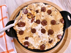 Love Cookies Peanut Butter Chocolate Chip & Marshmallow Pan Cookie – Recipe! June 3, 2021 / November 23, 2025 by Gena Bell | Leave a Comment Now that title is a mouthful and boy is this pan cookie. I really enjoy making cookies with my grandson because he appreciates it, and I see his adorable face when he’s eating one, it’s joyful. I try and create cookies that are close to traditional, but have a slight twist, yet are familiar to […] Read more » Baking with Gena Bell Cookies Deep Dish Cookie Recipes genabellrecipes Pan Cookie Recipes Peanut Butter Chocolate Chip & Marshmallow Pan Cookie - Recipe! Peanut Butter Pan Cookie Peanut Butter Recipes
