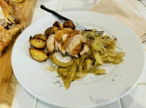 Food Main Courses One Skillet Roast Chicken with Braised Fennel – Recipe January 25, 2025 / November 23, 2025 by Gena Bell | Leave a Comment Discover the perfect dinner with my One Skillet Roast Chicken with Braised Fennel. Juicy chicken, caramelized fennel, and easy cleanup! If you own an iron skillet — it’s the perfect vehicle to roast a whole chicken and it can hold a whole bird. Roasting in one vessel allows the chicken juices to render over the […] Read more » Chicken Recipes cooking with Gena Bell genabellrecipes How to Roast a Chicken One Pan Meals One Skillet Roast Chicken with Braised Fennel - Recipe One-Pan Roast Chicken with Braised Fennel - Recipe! Roast Chicken Recipe