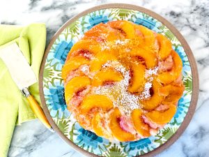 Laugh Cake Jammy Peach Upside Down Cake – Recipe! August 18, 2022 / November 23, 2025 by Gena Bell | Leave a Comment Golden gorgeous fruit baked into a soft buttery crumb — this Jammy Peach Upside Down Cake is a delightful summertime treat. Peach season just begun and if you haven’t already done so, go get some yellow or white peaches from a local farmer’s market. Golden ripe seasonal peaches are perfection all by themselves, but become […] Read more » Baking with Gena Bell genabellrecipes Jammy Peach Upside Down Cake - Recipe! Peach Recipes Peach Upside Down Cake Recipe Upside Down Cake