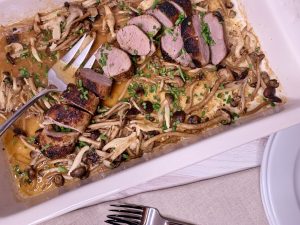 Food Family Style Laugh Main Courses Roasted Pork Tenderloin with Wild Mushrooms – Recipe! March 3, 2021 / November 23, 2025 by Gena Bell | Leave a Comment Making an entire meal in one pan has become an efficient tip for home cooks. I remember many days cooking in the kitchen, and having four or five pots going all at once, just to make one meal and thinking, this feels like a lot. Nowadays we have all gotten a little smarter in the […] Read more » cooking with Gena Bell genabellrecipes Pork Recipes Roasted Pork Tenderloin Recipe Roasted Pork Tenderloin with Wild Mushrooms - Recipe! Wild Mushrooms Recipe