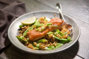 Food Gluten-Free Live Main Courses Asian Salmon Riced Cauliflower Bowls – Recipe! January 16, 2018 / November 23, 2025 by Gena Bell | 1 Comment on Asian Salmon Riced Cauliflower Bowls – Recipe! Riced cauliflower makes a great base for a variety of dishes, but especially Asian cuisine. The little cauliflower grains soak up herbs and spices, easily and take on the flavors of the dish. The trick to making great riced cauliflower, is to let the cauliflower grains cook before you add any spices, so the natural […] Read more » Asian Bowls Reciipe Asian Riced Cauliflower Asian Salmon Recipe Asian Salmon Riced Cauliflower Bowls - Recipe! Best Asian Salmon cooking with Gena Bell Riced Cauliflower Recipe