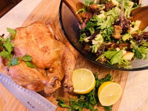 Food Main Courses Roast Chicken with Crispy Crouton Salad – Recipe! March 23, 2020 / November 23, 2025 by Gena Bell | Leave a Comment One of the simplest, and most delicious recipes to make is a roast chicken. Roast Chicken made at home is special, nothing fancy, but super tasty. It doesn’t require many ingredients, just get your hands on the best chicken you can find, and we’ll cook it up together, with a few cubes of bread for […] Read more » Bread Salad Recipe Chicken Recipes cooking with Gena Bell Easy Roast Chicken genabellrecipes Roast Chicken Recipe Roast Chicken with Crispy Crouton Salad - Recipe!
