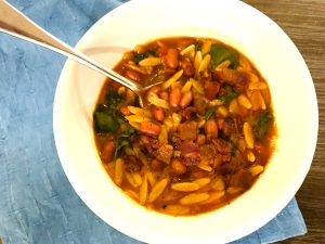 Food Live Main Courses Whole Grains Smoky Red Bean, Orzo and Bacon Stew – Recipe! January 4, 2023 / November 23, 2025 by Gena Bell | Leave a Comment I’m finding this rainy weather in Southern California so pleasant and a big bowl of my Smoky Red Bean, Orzo and Bacon Stew makes the perfect dinner on a chilly evening. I crave a good bowl of beans when it’s drizzling outside, especially sitting in a tomato based broth that has smoky highlights from paprika. […] Read more » Almost Vegetarian Recipes cooking with Gena Bell genabellrecipes Orzo and Bacon Stew - Recipe! Pasta e Fagioli Red Bean Recipes Smoky Red Bean Stew Recipes
