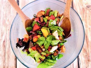 Live Salads Panzanella Salad with Peaches, Tomatoes and Basil – Recipe! July 22, 2024 / November 23, 2025 by Gena Bell | Leave a Comment Panzanella Salad with Peaches, Tomatoes and Basil is an Italian salad, traditionally from Tuscany, however I added sweet fruit along with dried bread, lettuce and tomatoes for a twist on a classic bowl of greens. What makes this salad so refreshing is the combination of fresh fruits and herbs added to the bowl, creating one […] Read more » Best Summer Salads cooking with Gena Bell genabellrecipes Panzanella Salad Panzanella Salad with Peaches Salads summer recipes Summer Salads Tomatoes & Basil - Recipe!