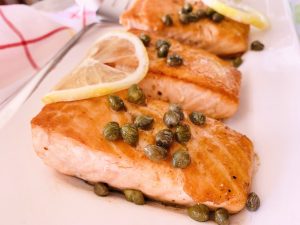 Food Main Courses Salmon Piccata – Recipe! July 24, 2024 / November 23, 2025 by Gena Bell | Leave a Comment Quick salmon meals like this Salmon Piccata are what I’m all about because it’s super easy and delicious at dinnertime. Salmon, especially in the summertime, is fresh and fabulous food that can be sautéed in a skillet, or broiled in the oven in about 8 minutes, or less. The fresh citrus sauce with a sprinkling […] Read more » cooking with Gena Bell Easy Salmon Recipes genabellrecipes Salmon Salmon Picata - Recipe! Weeknight Meals