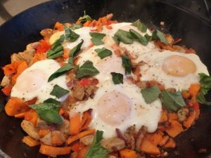 Breakfast Food Gluten-Free Live Sweet Potato Hash & Eggs – Recipe! January 16, 2016 / November 23, 2025 by Gena Bell | 1 Comment on Sweet Potato Hash & Eggs – Recipe! Weekends are the perfect time to prepare a more elaborate meal for breakfast or brunch. Hash is a mixture of potatoes and onions, sauteed until crispy and usually served on the side of eggs and toast. Most of the time hash is made with white or Russet potatoes, but I thought using sweet potatoes would […] Read more » Best Brunch Recipes cooking with Gena Bell Easy Sweet & Spicy Has & Eggs - Recipe! Whole30 How to Make Hash and Eggs Paleo and Gluten-Free! Potatoes and Eggs Recipe Sweet Potato Hash & Eggs Recipe Whole30 Recipe