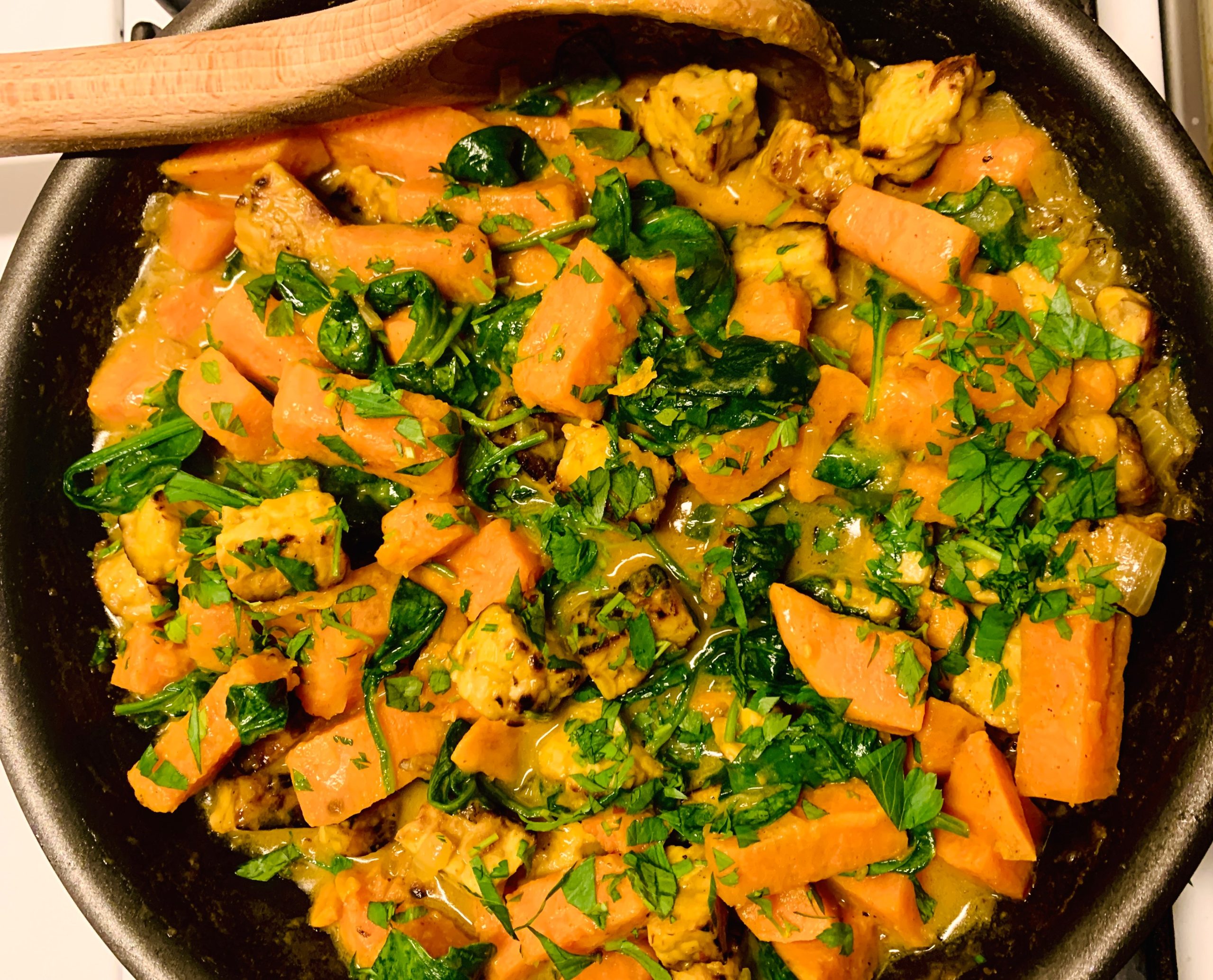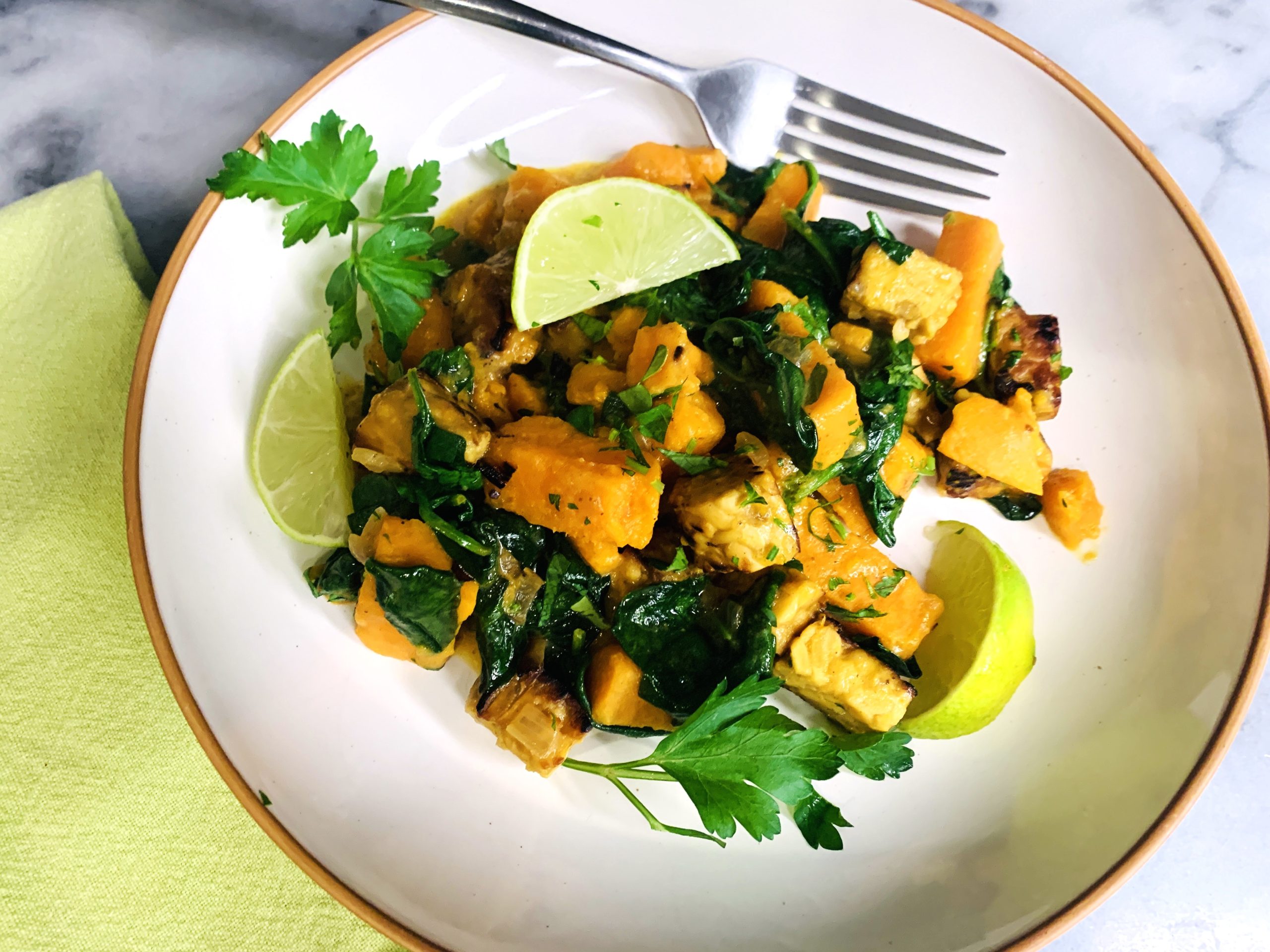 Toasted Tempeh, Sweet Potato and Spinach Curry – Recipe!