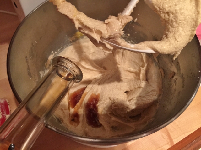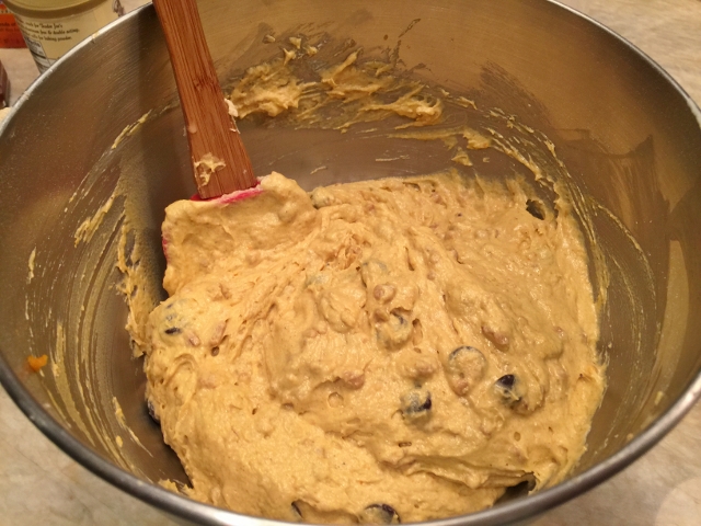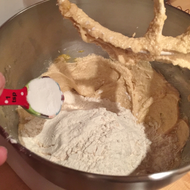 2. Add flour, baking powder, baking soda and salt and mix on low speed until just combined, about 1 minute. Add pumpkin and pumpkin pie spice to batter, mix for 1 minute.