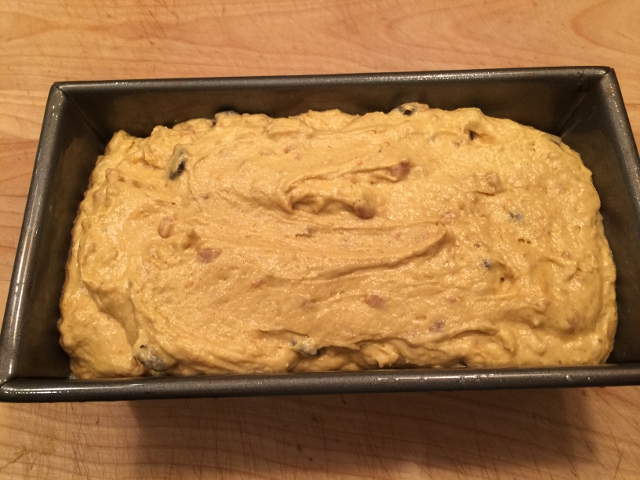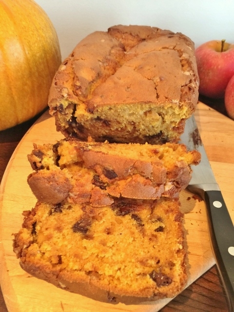 I think most people enjoy pumpkin bread and in this loaf, I added toffee and chocolate chips for a hint of caramelized sugar and chocolaty goodness. Toffee and pumpkin go nicely together – sort of reminds me of a creamy pumpkin pot de creme or creme brulee with a crunchy sugar top.