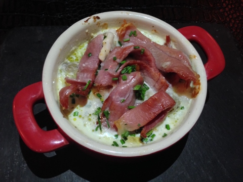 My husband had French comfort food with pot of Eggs and Cured Ham with Epoisses cheese sauce, which is the local cheese of Bourgogne (Burgundy). He loved it!