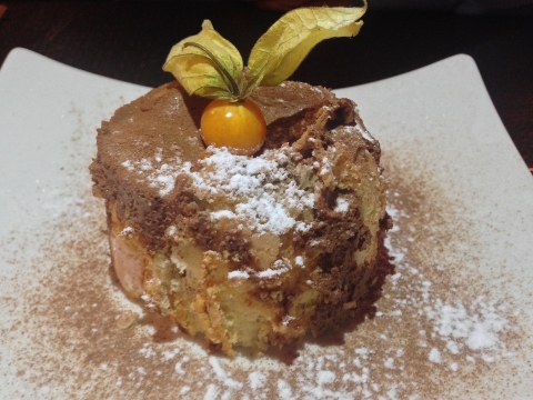 The restaurant did apologize for making us wait so long, but on a Saturday night with reservations, the chef needs to prepare ahead for a crowd. The Chocolate Mousse on a Brownie like Cookie sitting in Caramel was spectacular!