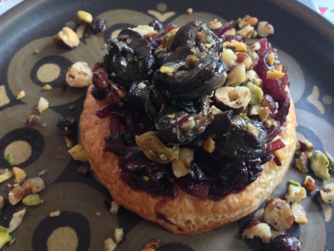 After the gougeres we proceeded with a Snails recipe that I had requested to make with Lynne. The snails had an Sweet and Sour Onion Compote on top of a puff pastry shell and topped with pistachios.