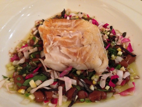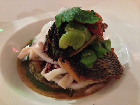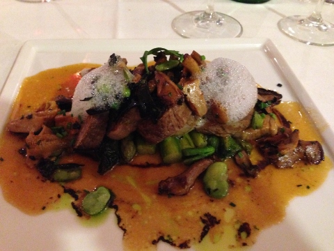 Trout with Calamari, Fava Beans and Parsley Oil was my main course and Veal with local Mushrooms, Favas and Foam was my husband’s dish.