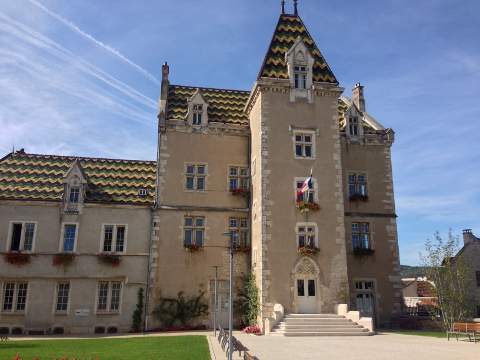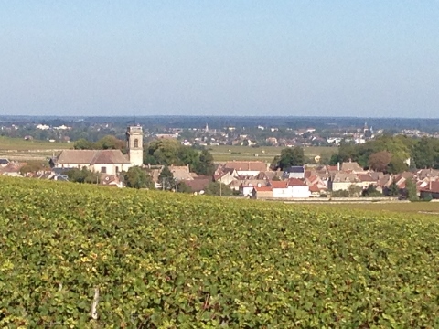 We biked to Domaine Michel Prunier et Fille in Auxey Duresses with a little help from Google Maps of course. On the way back we stopped in Meursault to see the city hall and check out a pottery store. This was the view of Pommard from the bike trail above.