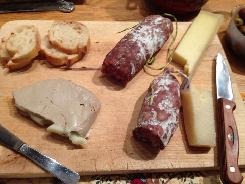 Local cheese and charcuterie we had left from our picnic.