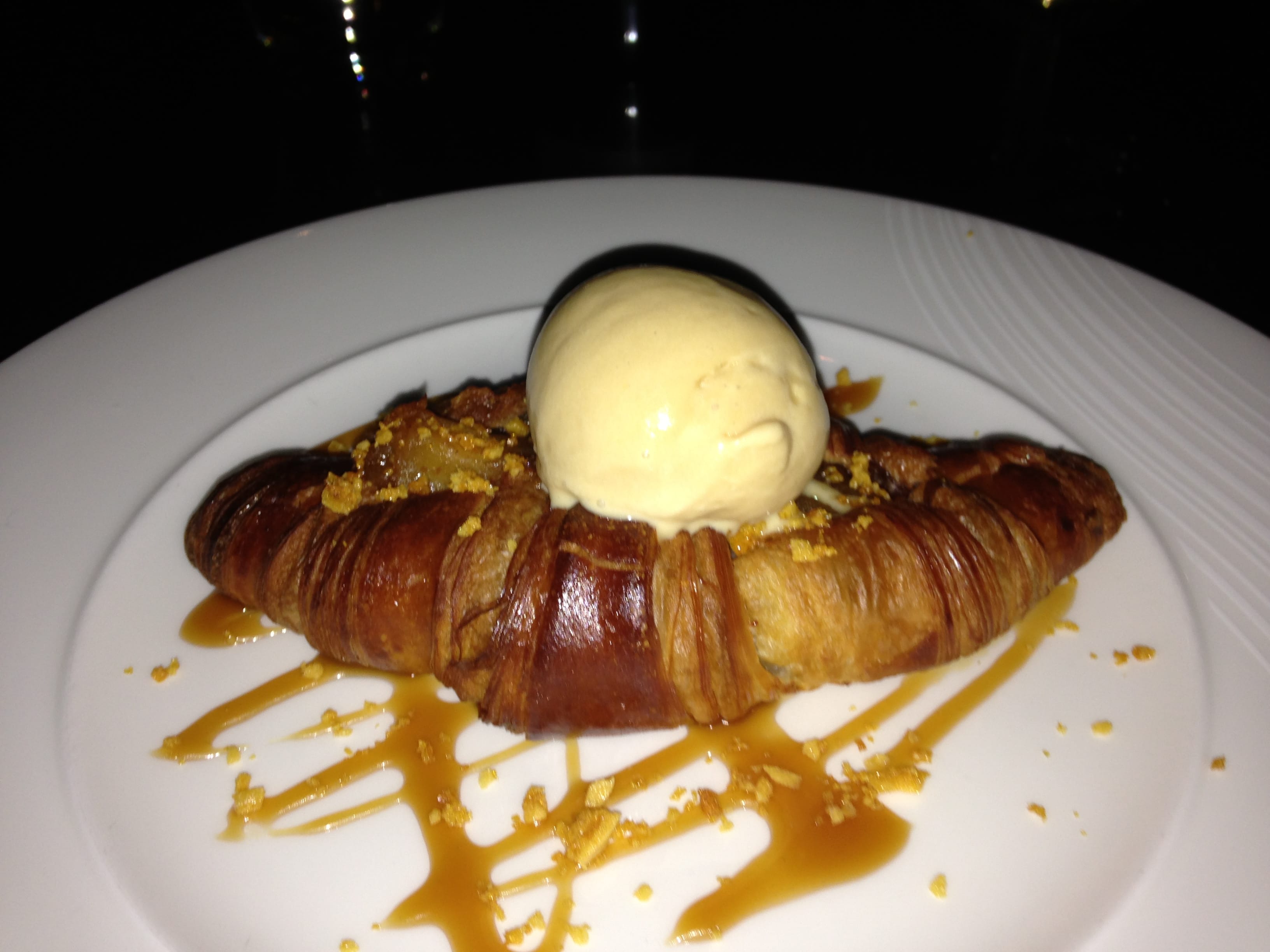 The dessert was delicious, a Bread Pudding served in a croissant topped with vanilla ice cream and a drizzle of caramel sauce. The pudding was soft on the inside and still had the crunchy outside to really bite into. Loved it!