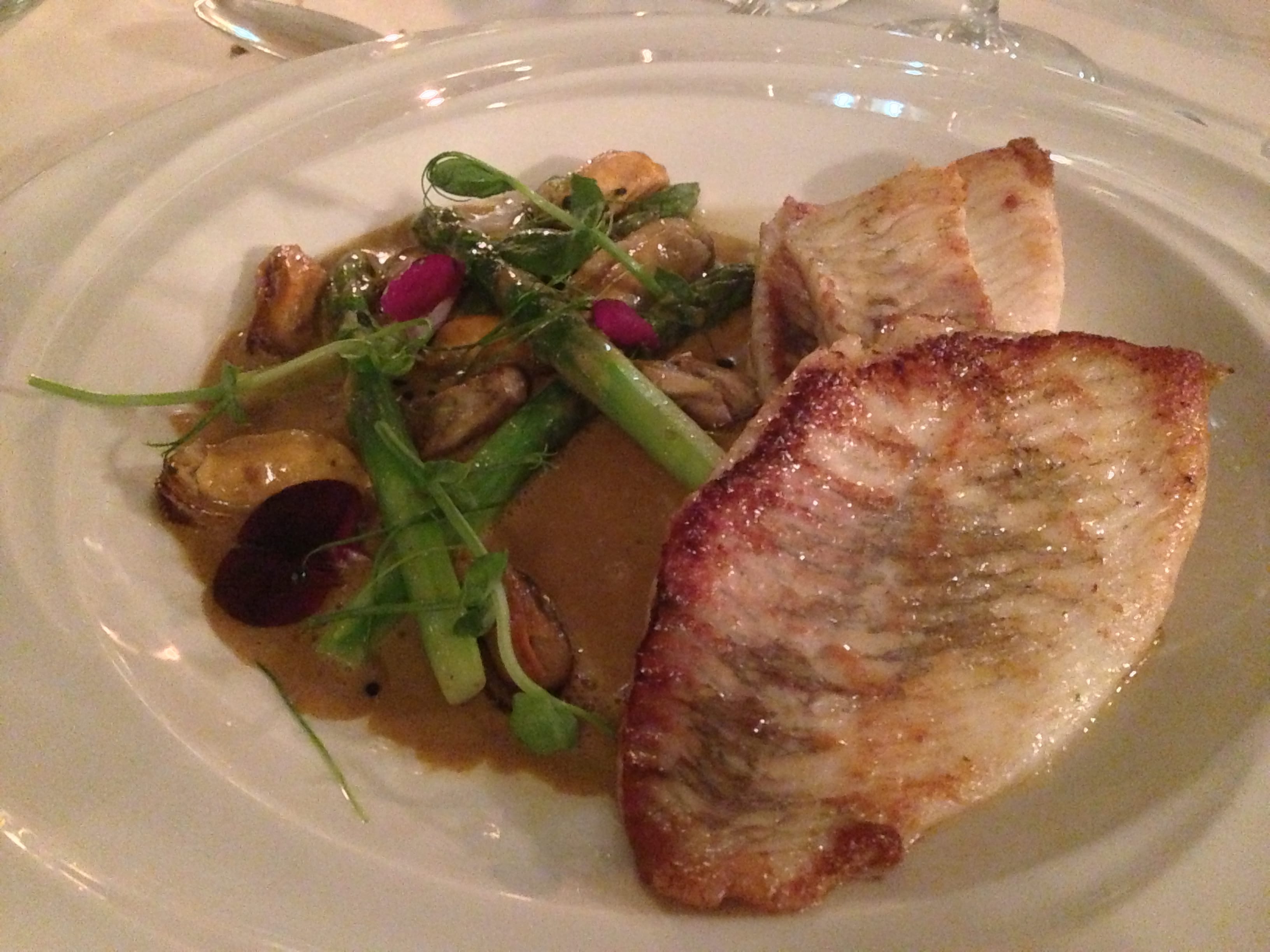 Our entrees proceeded with Turbot with Mussel Sauce and fresh Asparagus. The sauce, well…I can hardly put it to words….the best I have had. I am going to look it up in a French cookbook of mine when I get home and try and replicate it, it was that good. The fish was seared nicely as well but, again the sauce was the best part.