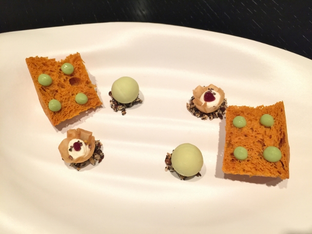 The Amuse Bouche with Paprika Bread and Avocado Cream, a Chilled Vegetable Sphere and Goat Cheese Crisp were flavorful and interesting as well.