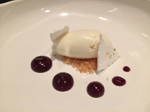 The desserts were many…some great, some more interesting than great.  My favorite was this first one, White Chocolate Ice Cream with Meringue and Dark Chocolate Puree.