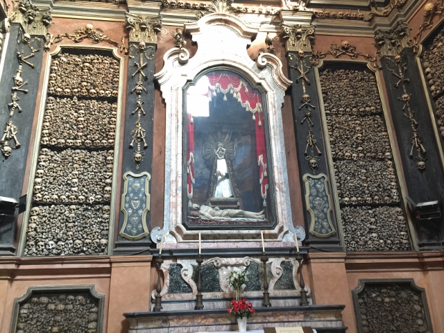 The following day we headed to some more landmarks in Milan.  San Bernardino alle Ossa was a church in Milan that was best known for its ossuary, a small side chapel decorated with human skulls and bones.  This chapel was originally a chamber, which was built next to a cemetary to house remains.