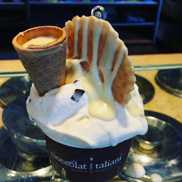 One final Gelato to top off our trip — Cioccolat Taliani made the best Gelato Sundaes I’ve ever seen!