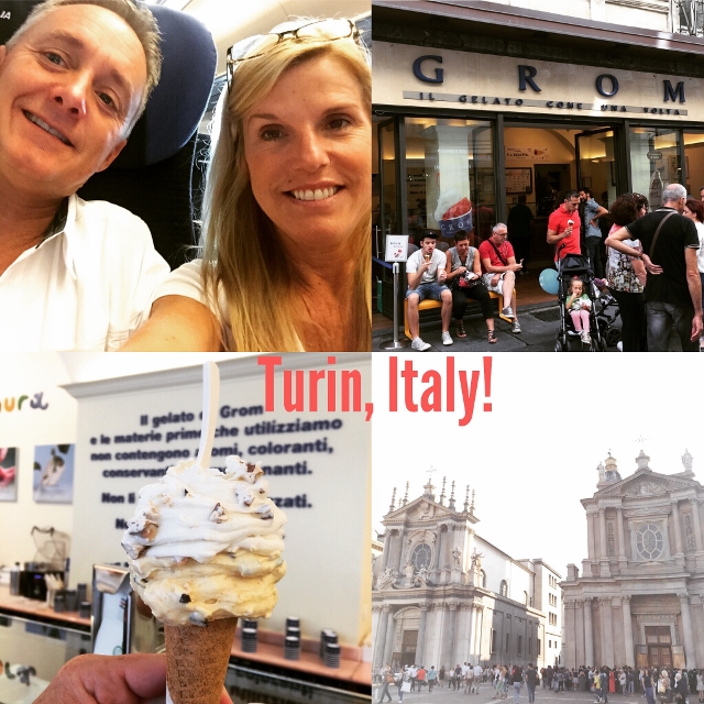 We started our trip with a train ride from Milan to Turin and spent one day in Turin exploring the city. Our first stop was Grom for gelato. Â Even though we have one here in Malibu California, I needed to taste the quality of Grom here in Turin and of course it was exceptional. Â The skill of the gelato staff was much more impressive than at home. Â For starters, there was a real art to the technique of swirling scoops on the cone and sense of pride with what they were creating.