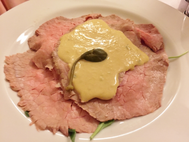 For dinner on our first night in Turin, we dined at Porto di Savona, one of the cities oldest restaurants. Porto di Savona, is located in the beautiful Piazza Vittorio which sits in a 19th-century tavern. The menu consists of Piemontese classics, such as Tagliatelle with creamy Castelmagno Cheese and Veal Agnolotti in a Beef Sauce. Â Vitello Tonnato or veal in tuna mayonnaise sauce is an appetizer served everywhere in the region and soon it became the subject of many jokes during our trip, not that we didn’t thoroughly enjoy it!